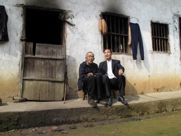 的风水师刘自新久别重逢亲切交谈 2010年2月12日朱老师拜访谢良华风水师合影